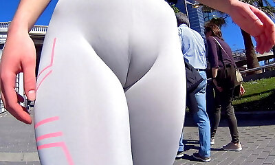 Good cameltoe video with girls in spandex cutoffs