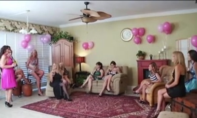 Sizzling super-hot lesbians playing kinky lesbian games at the party