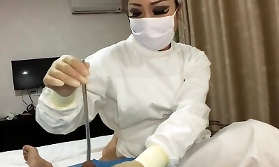 Frisky nurse Aya Inazawa gives a special therapy to her pantient