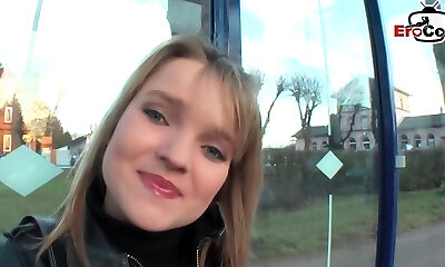 Redhead Deutsch cougar works that big cock with her ass and mouth in the park