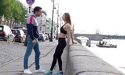 Young pikaper on the street took Russian dame in tights and lit on se...