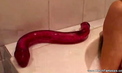 Slamming Her Hole on Gigantic Dildos