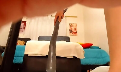 A seductive trans girl enjoys her fucking machine and the vacuum of her rock-hard rod.