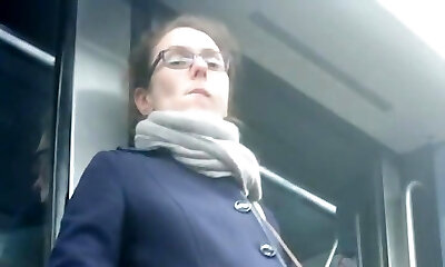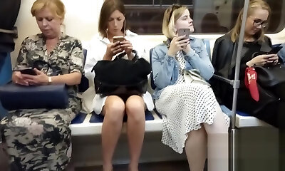 Impressive Blonde in Bus (downblouse and upskirt no pantie)