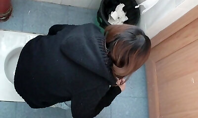 Women peeing in a public bathroom caught on spy cams