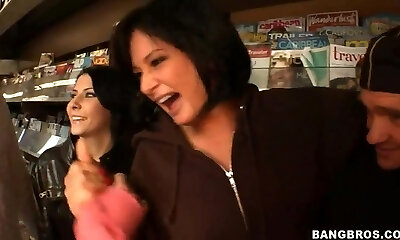 Super juggy friend Gabbie Carter gives a blowjob and gets her twat inserted