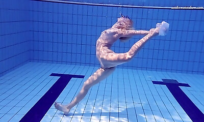 Beautiful Elena Proklova once again gets completely naked in the pool
