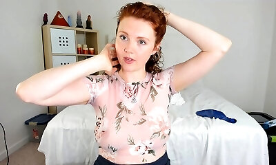 Teasing redhead milf with glasses and thick boobs sucks cock