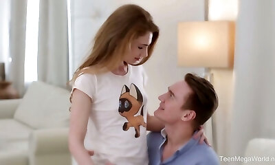Sexy Russian cutie Alexi Star goes downstairs to ride strong cock of Boyfriend