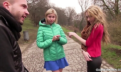 Sassy and curvy adorable white honies teases one man and inhale his cock together
