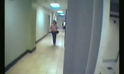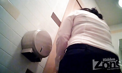 White chick in the public rest room room filmed from behind